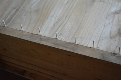 ゆるんでいる部分は木釘を打ち込んで固定します。