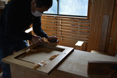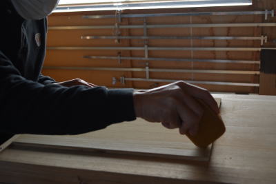 桐たんすの木地仕上げ