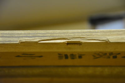 取り除いた部分に新たに桐の木を差し込み貼り付けます。